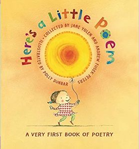 his short poem is on a two page spread featuring hundreds of thin raindrops falling. There is a girl with an umbrella who is happily skipping along, enjoying the experience. This is the book you need to have when introducing children to poetry.
